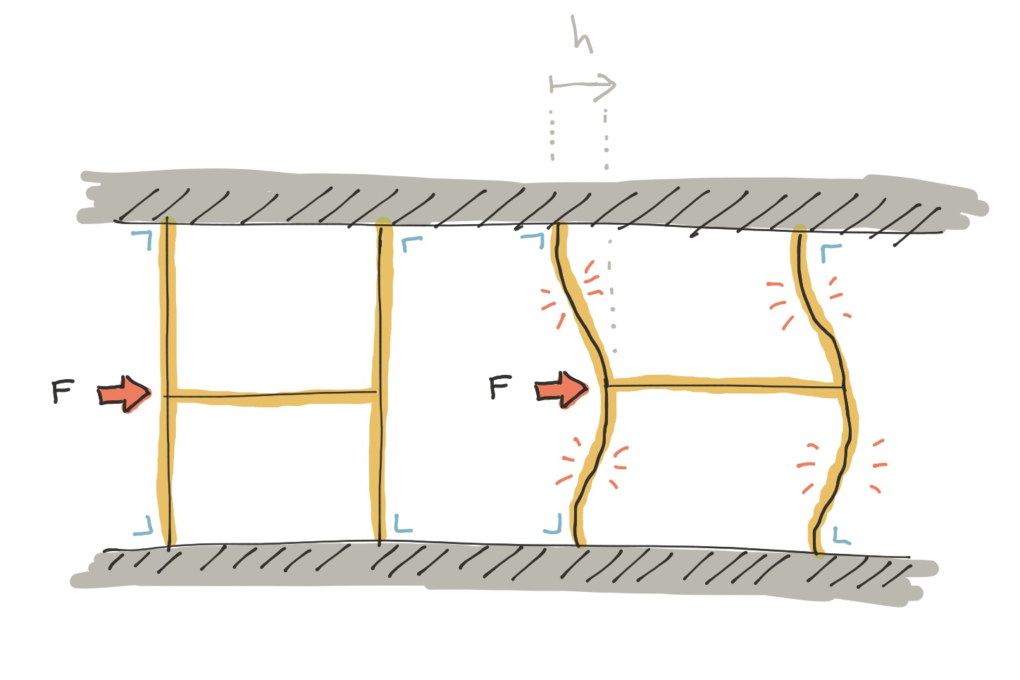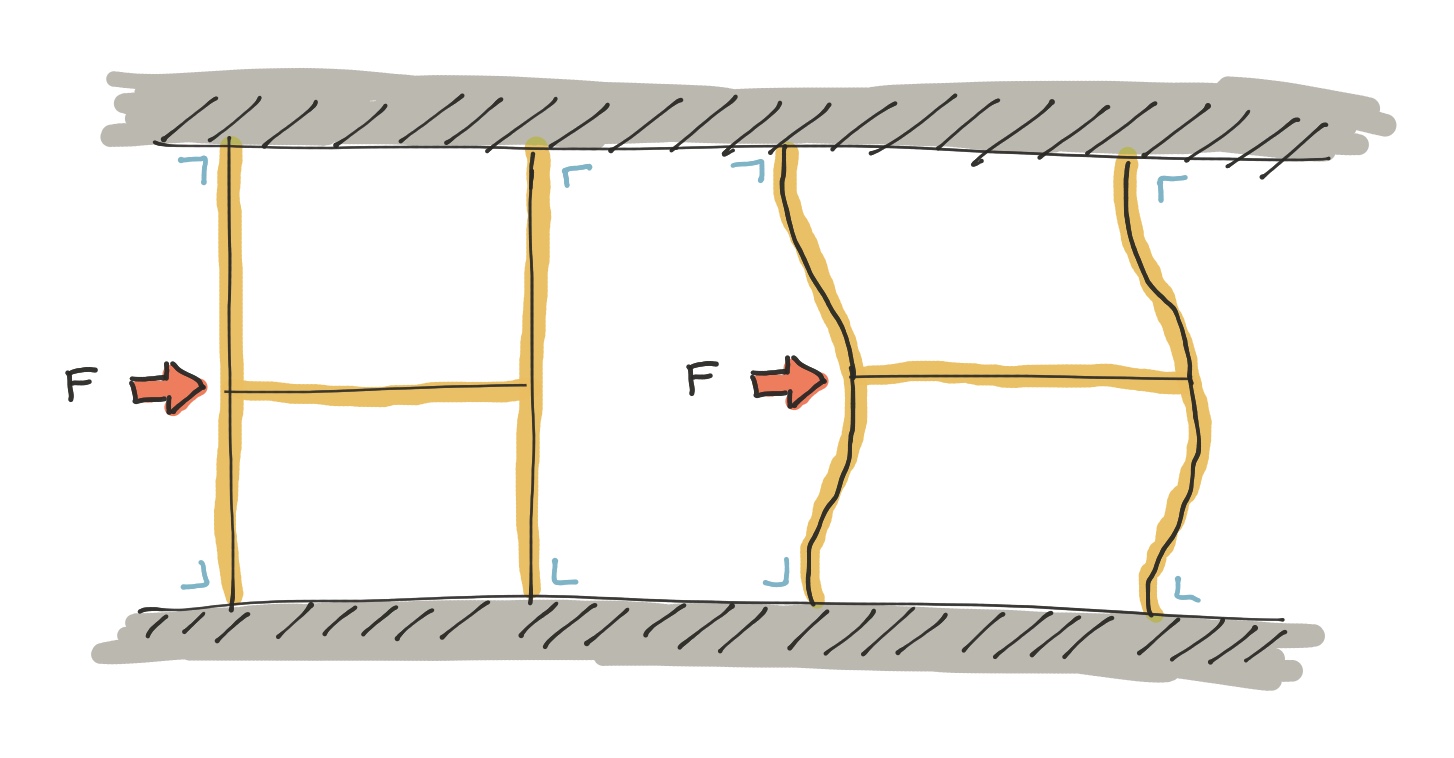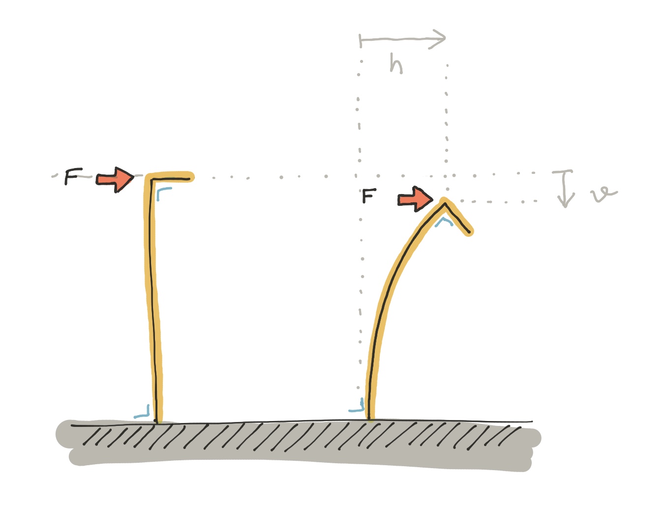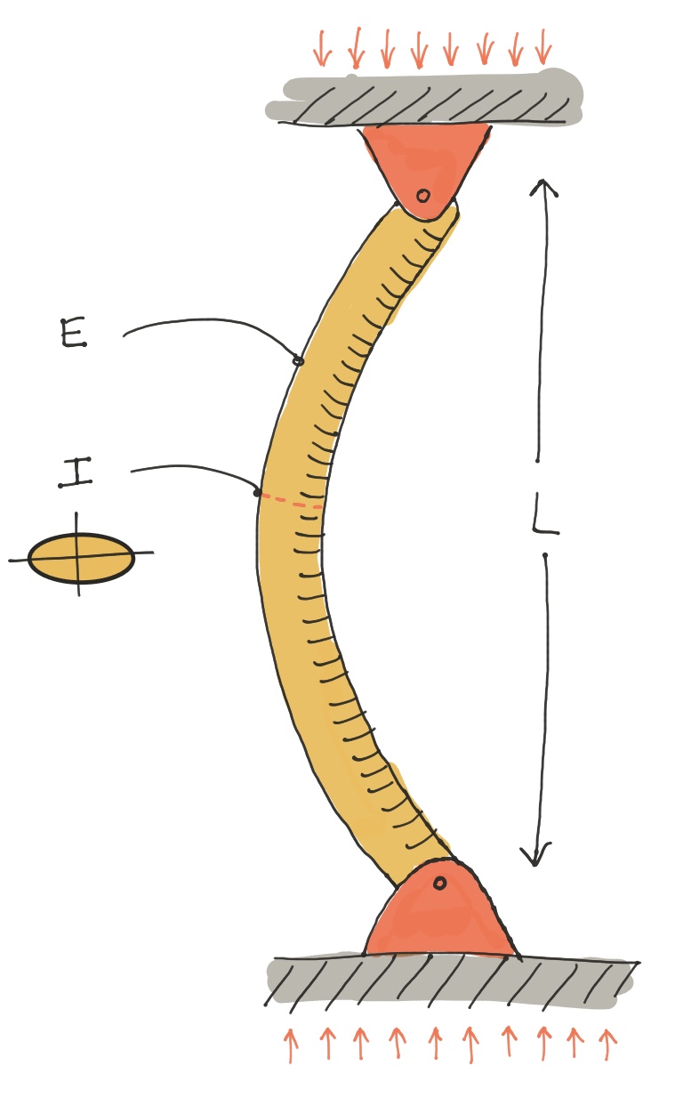 Critical buckling load of pinned column \[P_{cr} = \frac{\pi^2EI}{L^2}\]