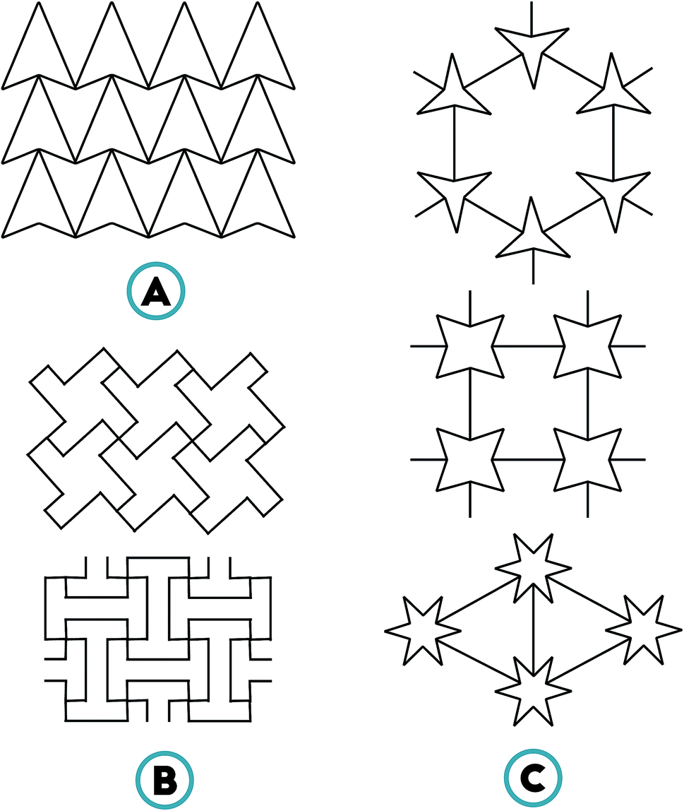 (a) Arrowhead (b) Lozenge grid and square grid (c) 3-STAR, 4-STAR and 6-STAR systems