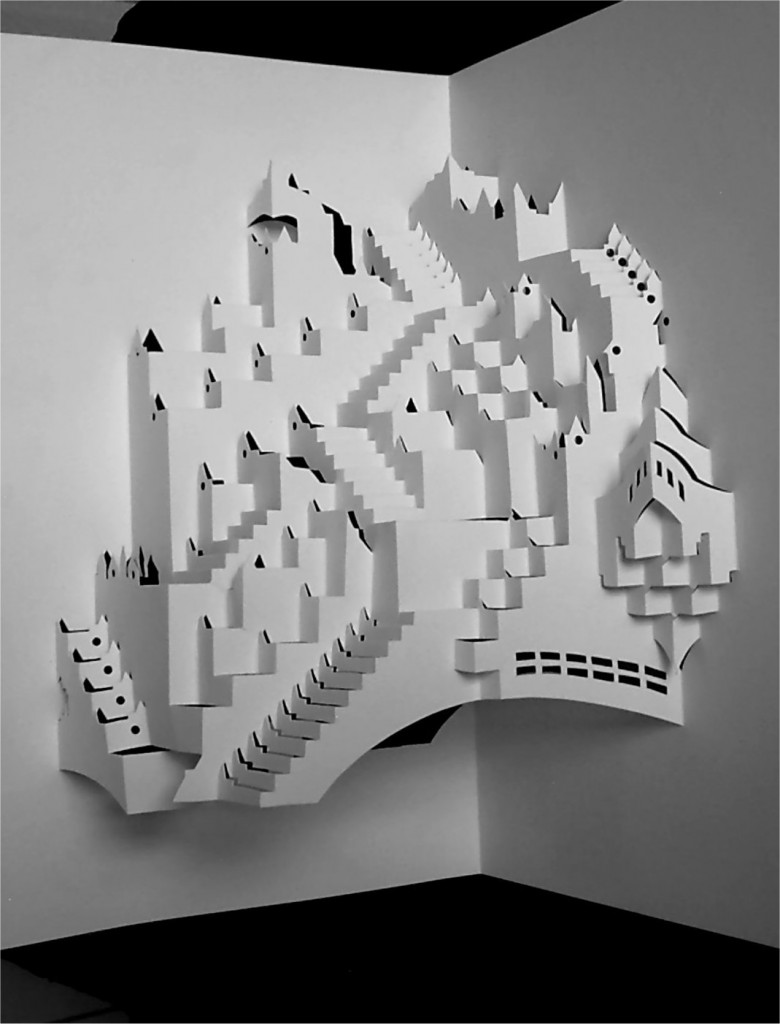 the Japanese art or technique of cutting and folding paper into objects or designs.