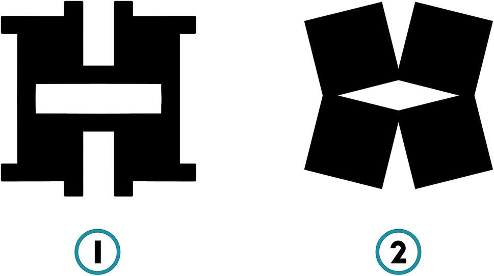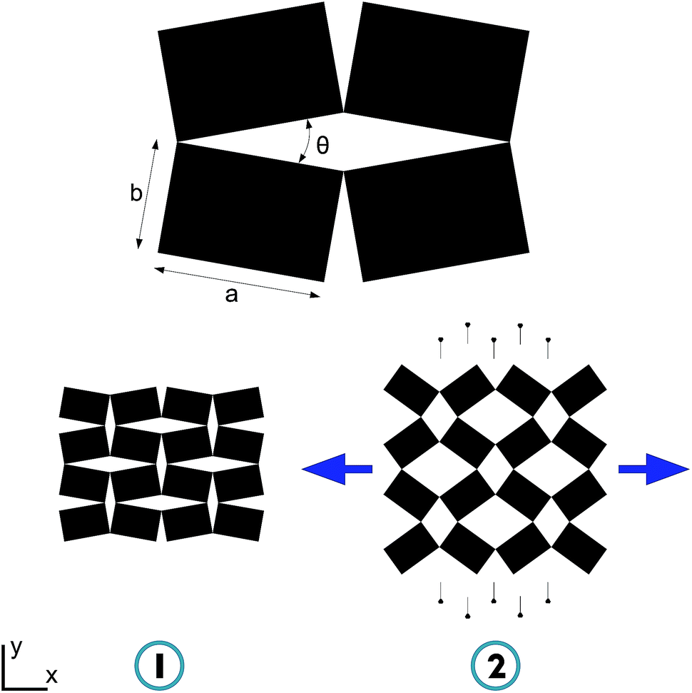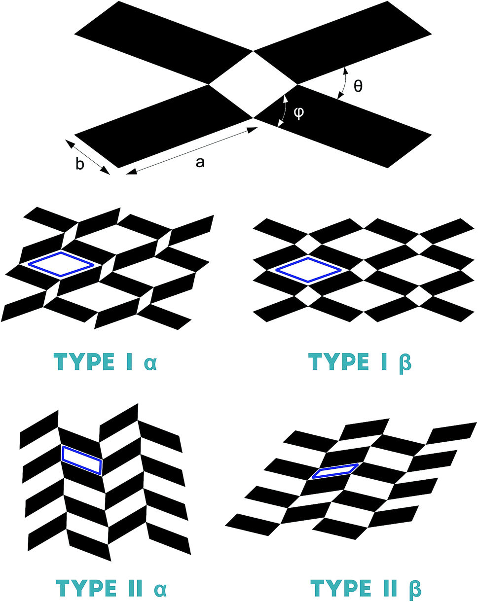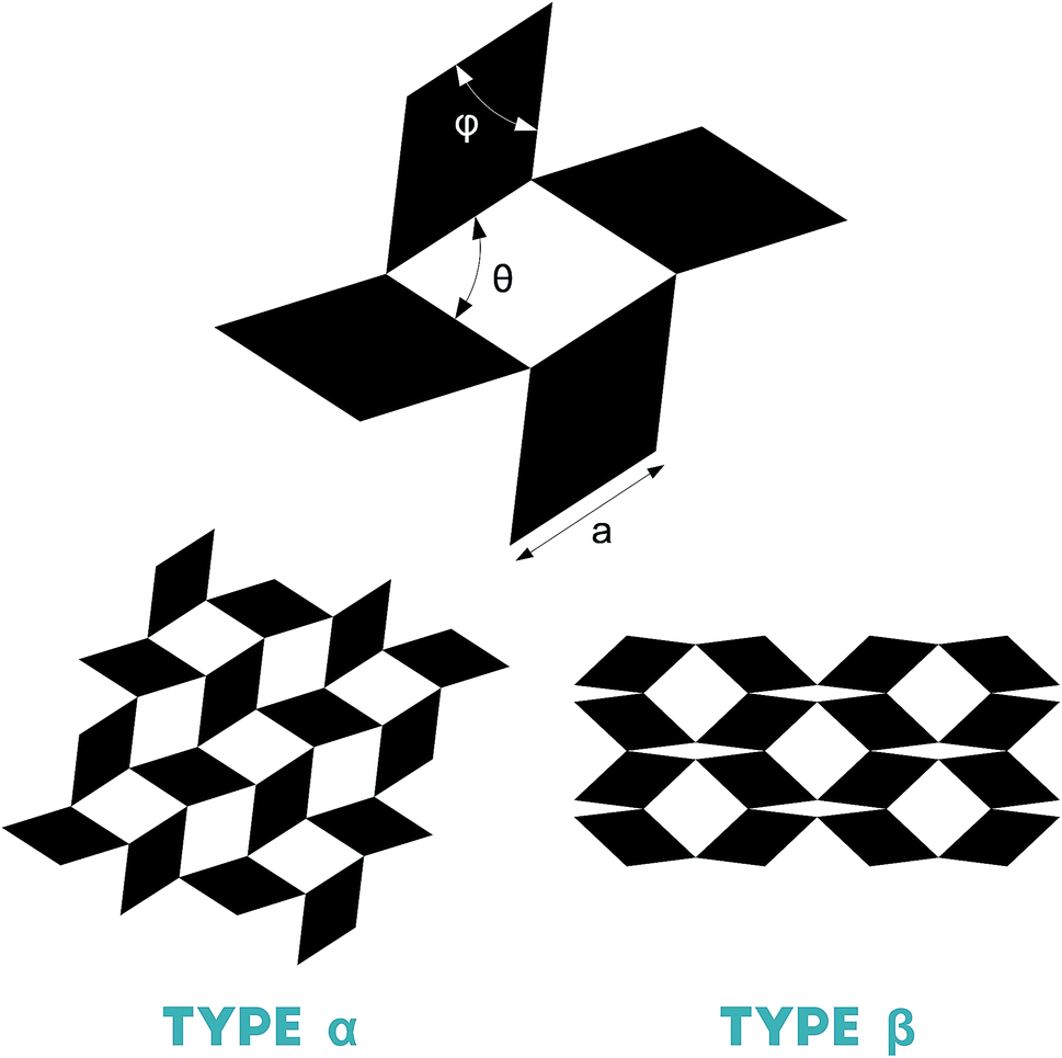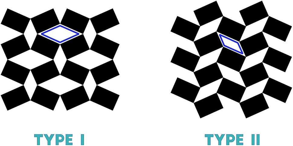 Type I and Type II rotating rectangles. Type I showing rhombi in their empty space and Type II showing parallelograms.